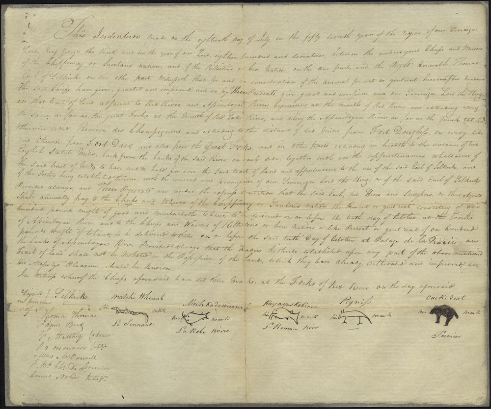 The Selkirk Treaty, July 18, 1817. Lord Selkirk’s vision for the future excluded the land’s First Nations and Métis peoples (MIKAN 3972577)