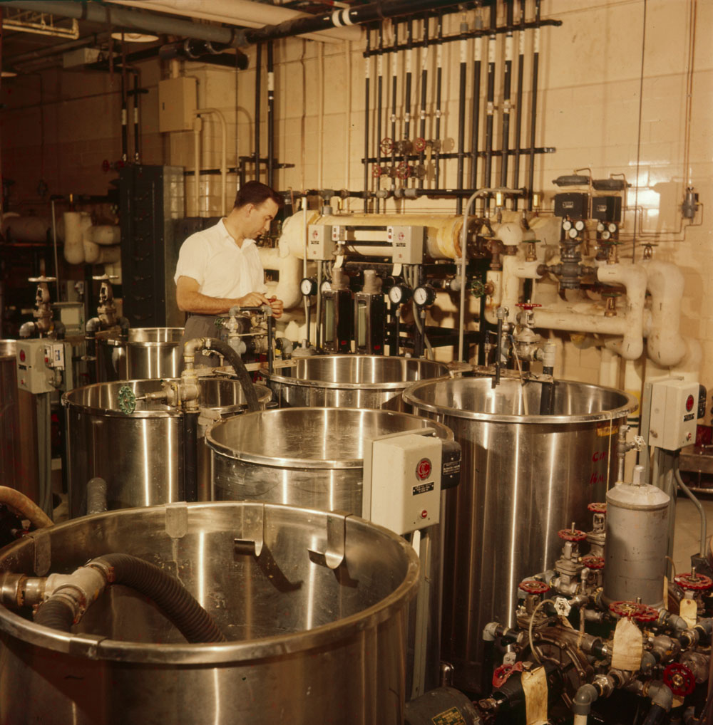 Early laboratories were small, sometimes even a single room in someone’s house. Dedicated facilities for laboratory research started to appear during the First World War. However, during the Second World War, Canada’s industrial war effort increased dramatically, which contributed to the growth of “big science.” Many laboratory settings became large industrial complexes employing significant numbers of people. Funding for large-scale research projects depended on government investment or consortium partnerships.