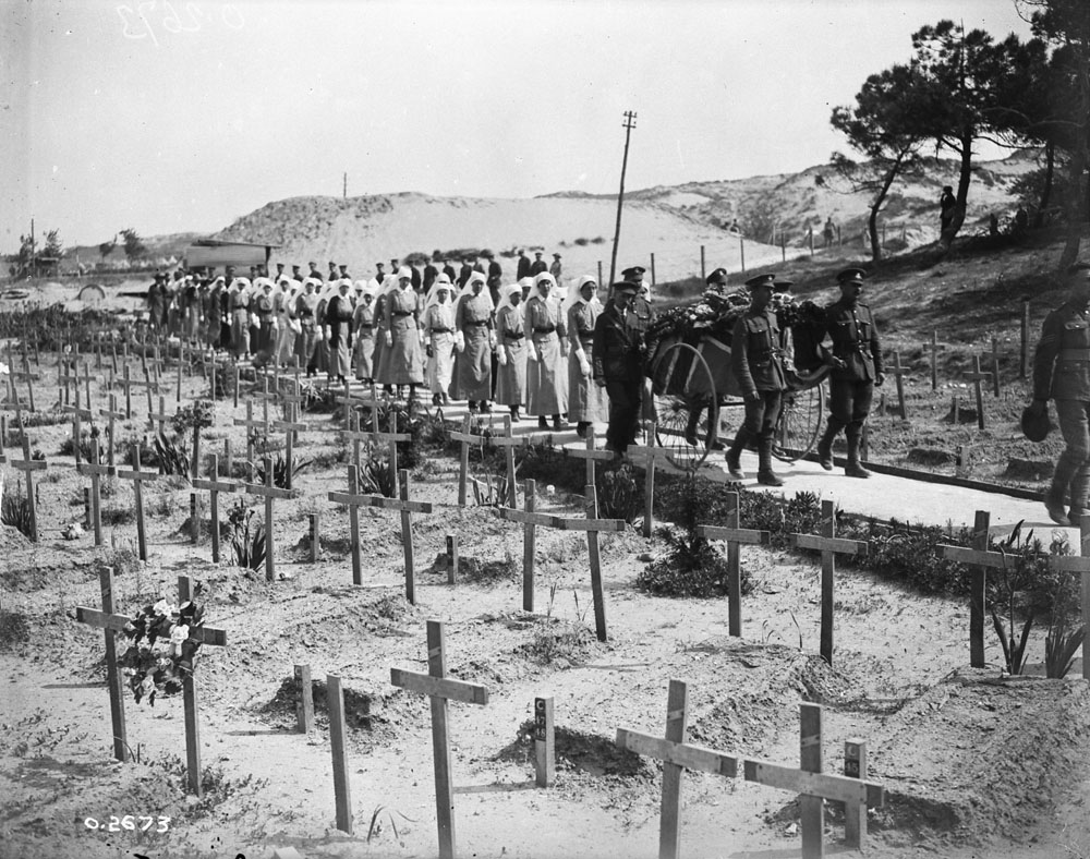 Official photographers captured scenes of the devastation and somber funeral processions for the nurses and the other medical staff and patients killed in the raids. At the end of the month, No. 3 Canadian Stationary Hospital at Doullens, France, was also bombed. Three more nursing sisters died. Two of them, Nurses Agnes MacPherson and Eden Pringle were killed, along with doctors, medical orderlies and a patient during surgery.