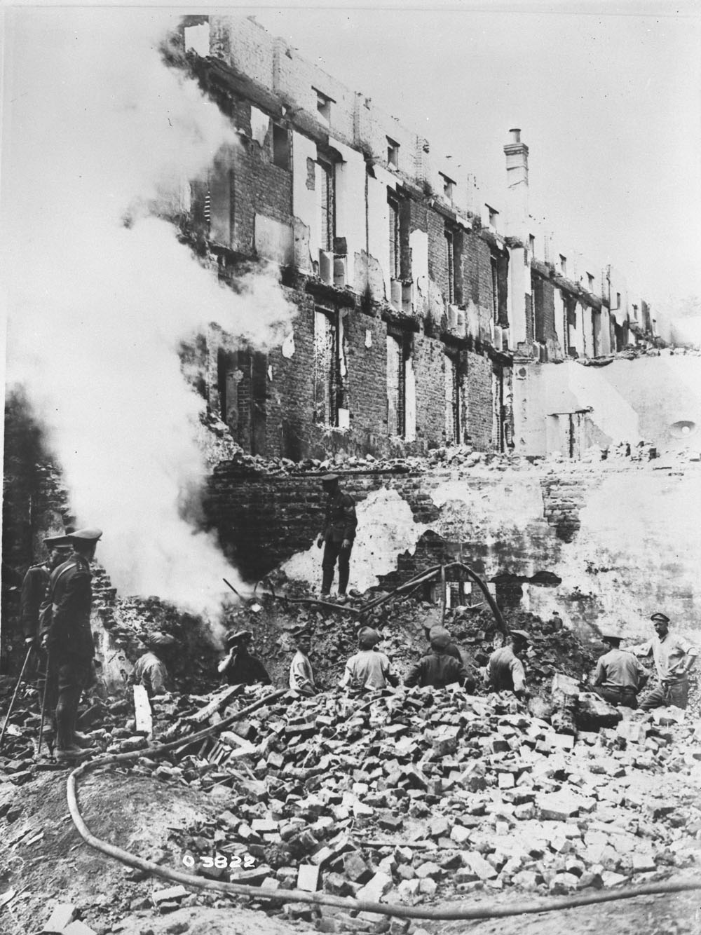 Aftermath of the bombing of No. 3 Canadian Stationary Hospital at Doullens, France, which killed three Canadian nursing sisters. PA-003746 (a003746)