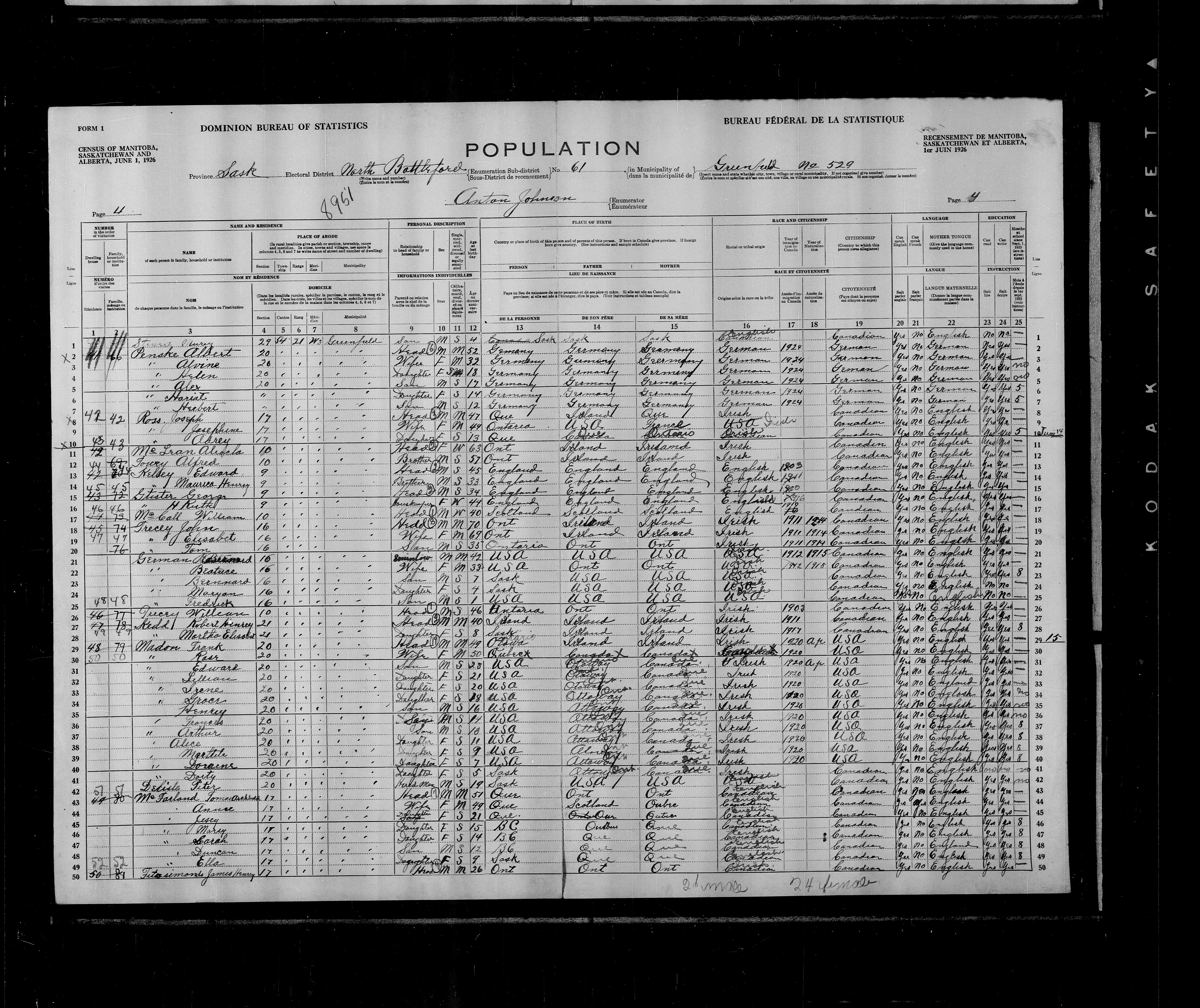 The 1926 Census of Prairie Provinces lists “the names of every person whose usual place of abode on June 1, 1926 was with the family or in the dwelling house for which the enumeration is being made.” The key point in that sentence is that the person must call the home for which the enumeration is being made their “usual place of abode.” Genealogists should keep that in mind when searching for families with older children, as they may have struck out on their own by 1926. This also includes lodgers and those employed as domestic help or as a servant.