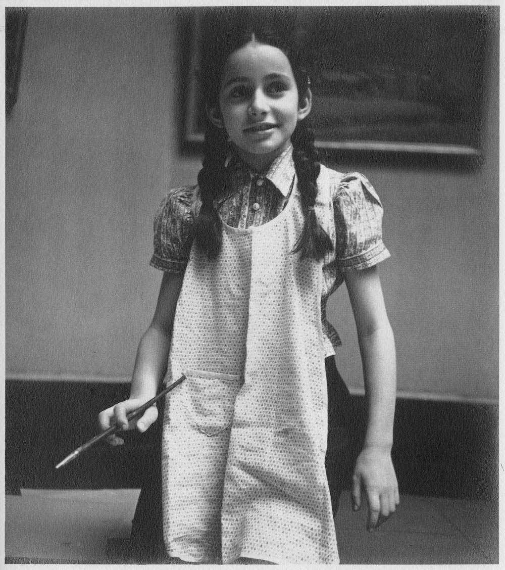 Girl with paintbrush at Arthur Lismer’s children’s art classes in Toronto (e010958789)