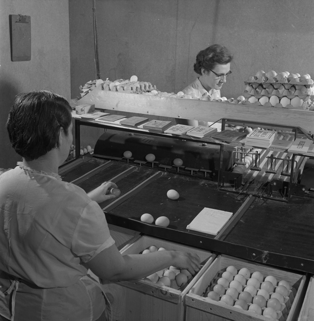 Ms. Hines and Ms. Dominey preparing eggs for consumers, Port Williams, Nova Scotia [MIKAN 4948583]