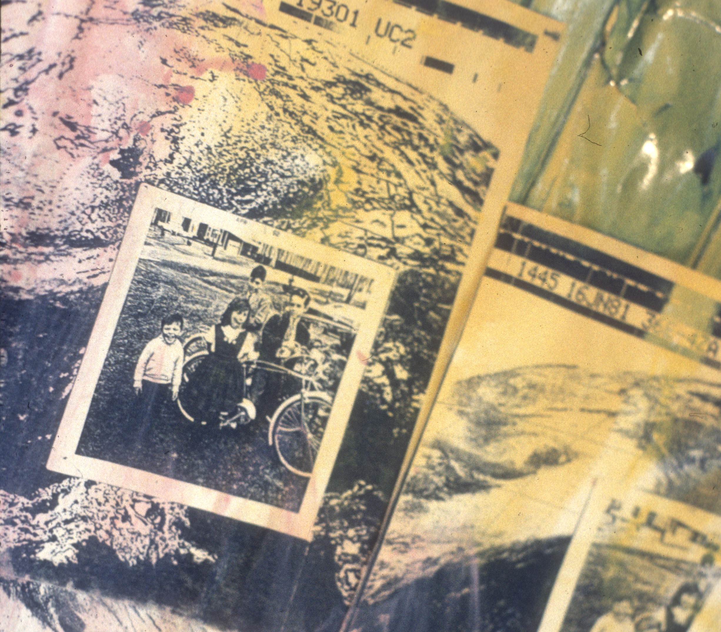 Photographs and slides in this archival fonds show that the film’s conception unfolded not in a word processor, but in an artist studio. Advertisements for weapons and photographs are pasted to the walls, collaged, combined and painted over. We see here the meeting of the personal in the family photo and of the technically mediated with the details from the fax machine.