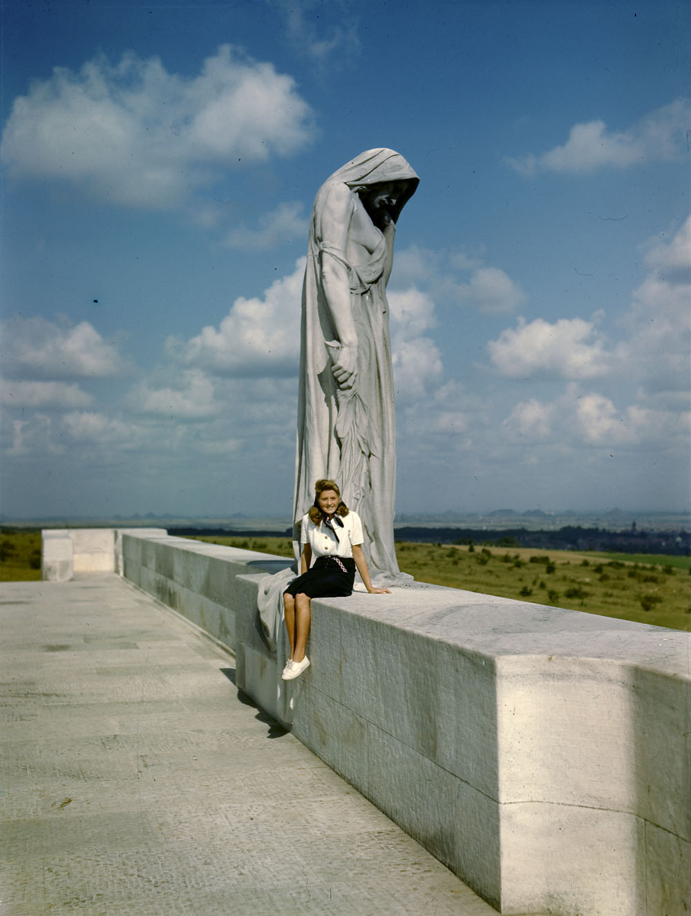 Simone Stubbs, daughter of George and Blanche Stubbs, on the Vimy Memorial, ca. 1944–1948 (e010786286-v8)