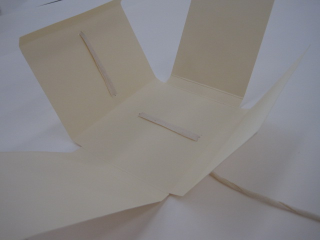 Detail of the sewing tape located under the board paper and the impression left on the adjacent page.