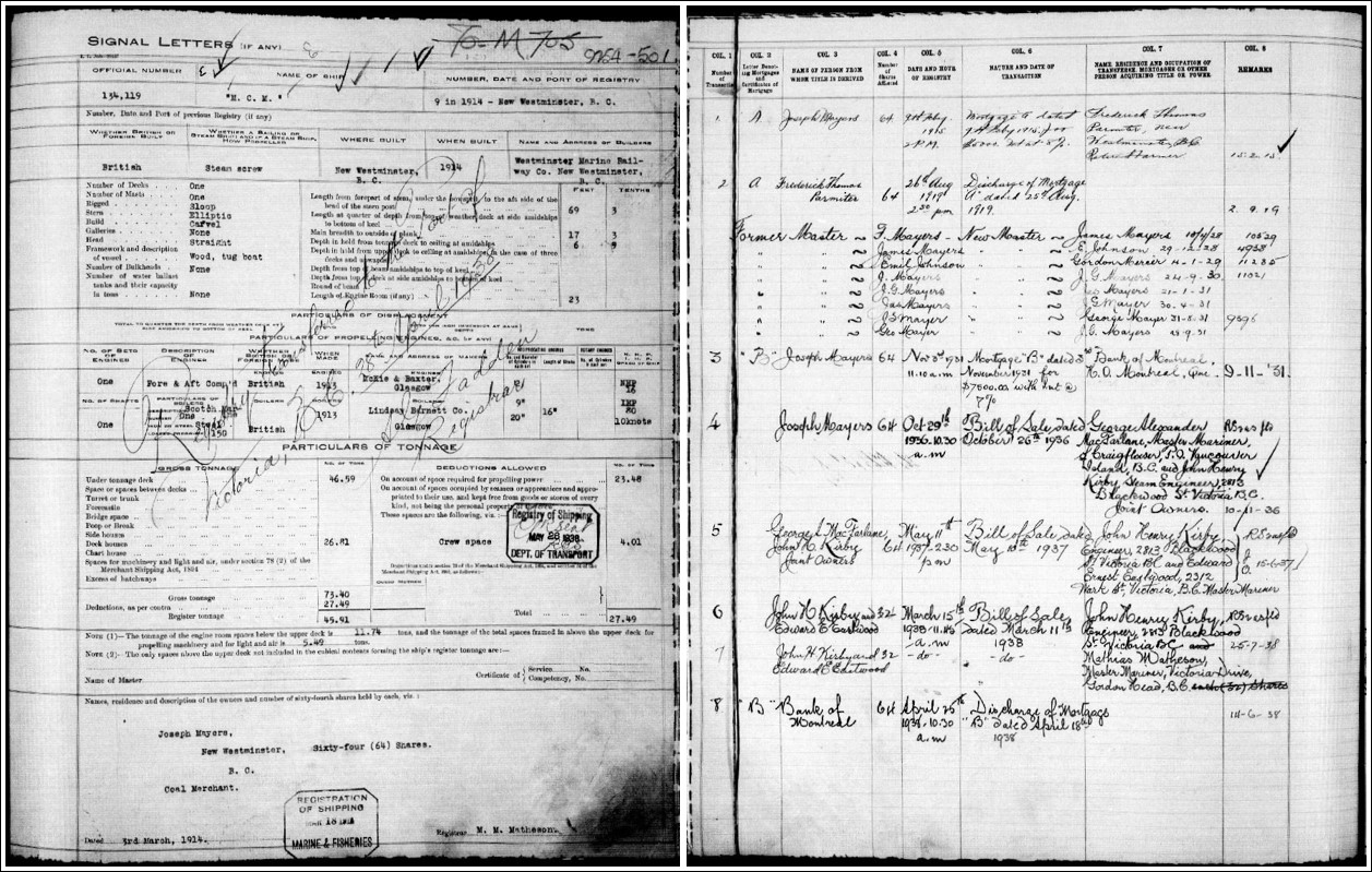 [M.C.M., Port of Registry: NEW WESTMINSTER, BC, 9/1914] R184, RG12-B-15-A-i, Volume Number: 3041. (e011446335_355)