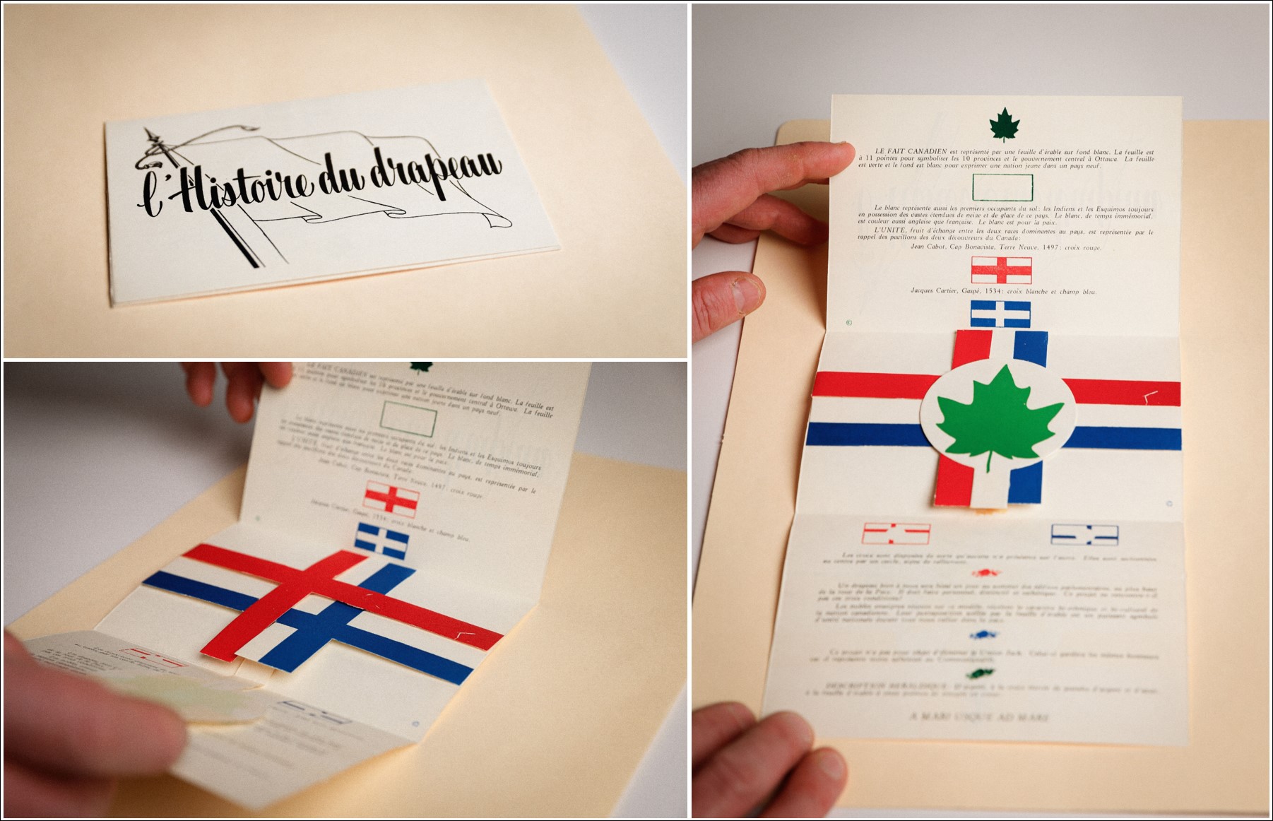During our conversations, Daniel Dubuc also told me a tantalizing tidbit: his father had produced another piece of ephemera to promote his flag design. It was a foldable model that explained the components of the design and showed how they fit together. Unfortunately, the family did not have a copy, at least not at hand. I made a mental note to keep an eye open for one.