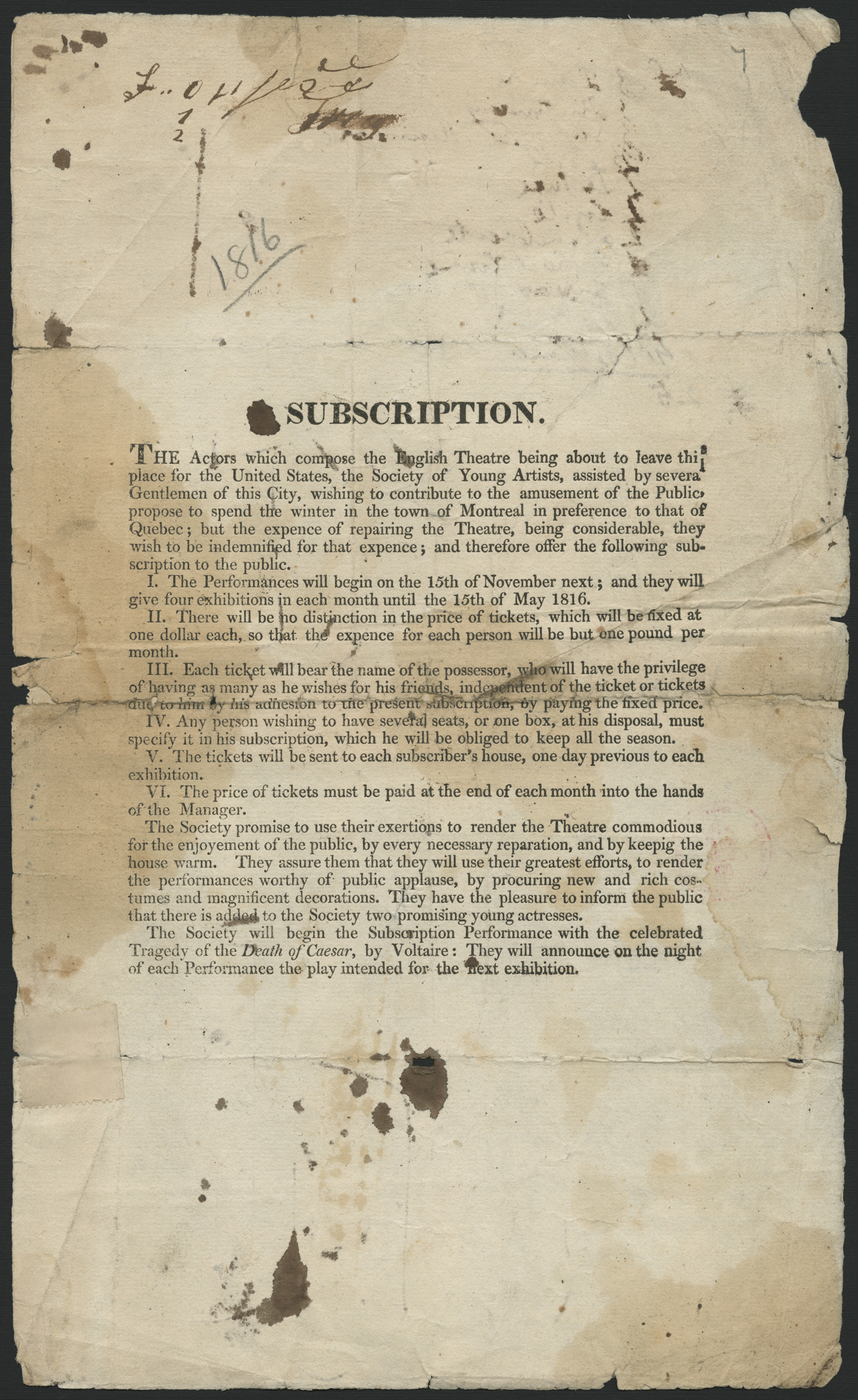 Although the archival collection of Cercle Molière is preserved at the Centre du patrimoine of the Société historique de Saint-Boniface, some documents that reflect the existence and evolution of this important theatre company are part of the collections of Library and Archives Canada (LAC), notably the Gabrielle Roy fonds.
