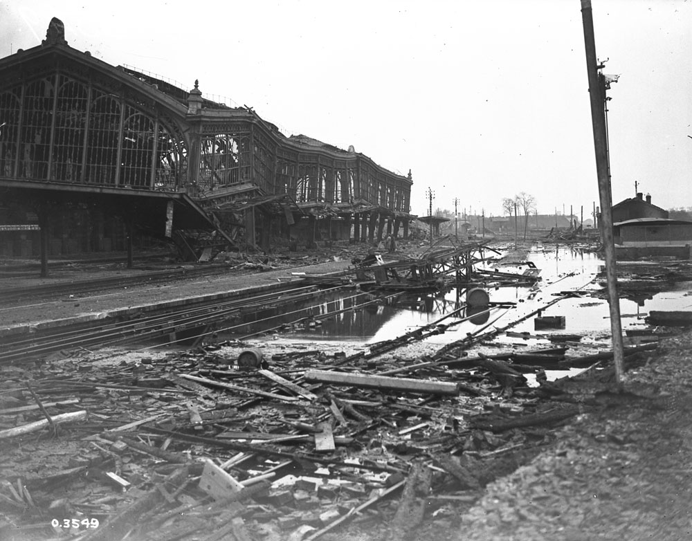 The flooded railway station at Valenciennes, November, 1918 (a003452)